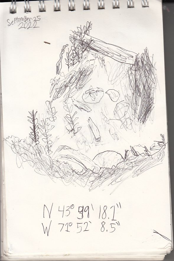 On day One I arrived at cardigan and hiked to Welton Falls. The morning started with a shower and double checking my bags. Arter saying goodbye to my mom and a short car ride with my dad, the bus was going and soon everyone in session 1 was at Cardigan. We found the counselors on the green and played games like yeehaw with them, later we put our luggage in the mudroom, I deposited stuff that I didn't need in my day pack and when to the living room to find Shawn and the group discussing their names. Then we made the group contracts rules and a name for our group, The Red Dead Tumbling Fires. After going outside and drawing the AMC lodge our group was off to the Welton Falls, First we walked past a patch of cut down trees, then we stopped to draw something at an overlook. There I spotted a birch tree growing out of another tree and drew a firn, the next stop was another overlook but this time with a bigger drop, we stopped there for some time and Mr.Woolners group stopped with us and he even told us a story about the hemlock tree. The next stop was a big stream in the river that we had to parkour across, I think someone fell in but in but i'm not sure who, there I found a big piece of glass covered in moss. The last step to getting to Welton Falls was a super steep hill that I ran and jumped down (but still stayed behind shawn) to find the beautiful gorgeous strength of thousands of years of erosion turned into a ton of water flowing out of a cliff. When we got down there we saw a gigantic toppled over tree and Max the cool counselor taking science equipment out of his backpack wile Mr.Woolner was helping him organize the equipment it for the experiment that we were going to do. The hike back was quick and simple, and we soon found ourselves back where we started at the AMC lodge.