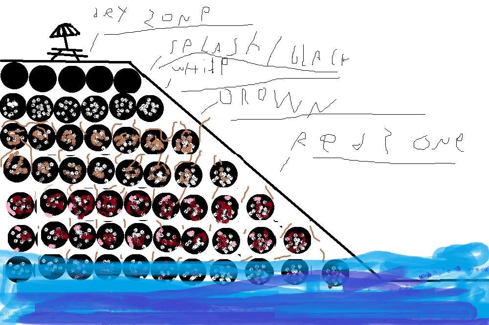 rocks are at odirone. the rocks are coverd with black. more black, coverd rocks.