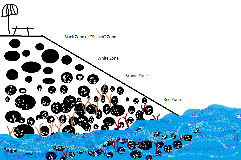 I think that between the brown and red zone has the most variety. There are a lot of animals and plant in the brown and red zones. We saw all differnet kinds of crabs, seaweed, shells, and so many other things. There was also a good amount of water in the brown and red zones, which means that there is probably more animals and plants.