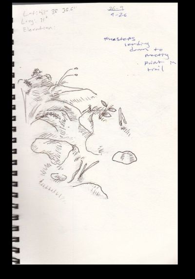 On day two of the Cardigan field trip my group hiked mount Cardigan. In the morning I woke up at 7:30, got dressed into my day clothes, and brushed my teeth. Then we all gathered for breakfast at 8:00. After we ate our french toast, we changed into our hiking gear and gathered for another meeting with our instructors. We talked about what our plan was for the day. When we agreed on a route, we gathered our things and headed on our way to Mount Cardigan. The hike started off with an easy incline, but slowly it built up. Along the way we crossed a bridge, and took many and sketches. We made sure not to miss any waypoints that needed to be recorded. It was a long hike, but we finally arrived at the summit. We met up with the other groups, and afterwards, we ate lunch. Before we made our way back down, we completed a sound map, and sketched the view. When we all agreed it was time to leave we went back down a different way we came up. Our instructor showed us a small cabin, and talked about the current surroundings. Following that, we made another sketch and left. Eventually, we found our way back, and once again, had a meeting in our groups meeting area. We talked about how many miles we hiked, what went well, what we learned, and what we wanted to leave behind. At last we could enjoy our free time. I showered and read waiting for dinner time. Many of the other kids spent their time down in the living room area playing games. After dinner was served we ate, and hung out. When it got dark, we went outside for a night activity. All of us were put into groups and we had to improv a scene that we made up. Later, Mr. Woolner read us another story and sent us off to rest.