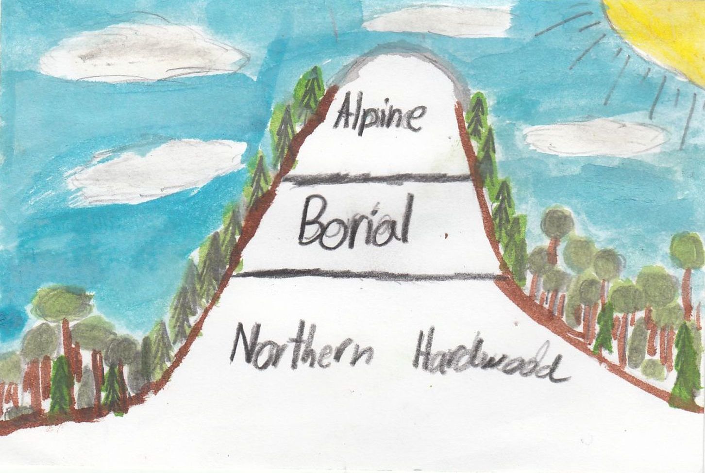Physical Geography! Cardigan is a mountain that is bare of vegetation at the top. It has oceans of trees surrounding it with other mountains near it. It has rocks that have been around for longer than the light bulb was created. It has sunny days and stormy days both have beautiful views.