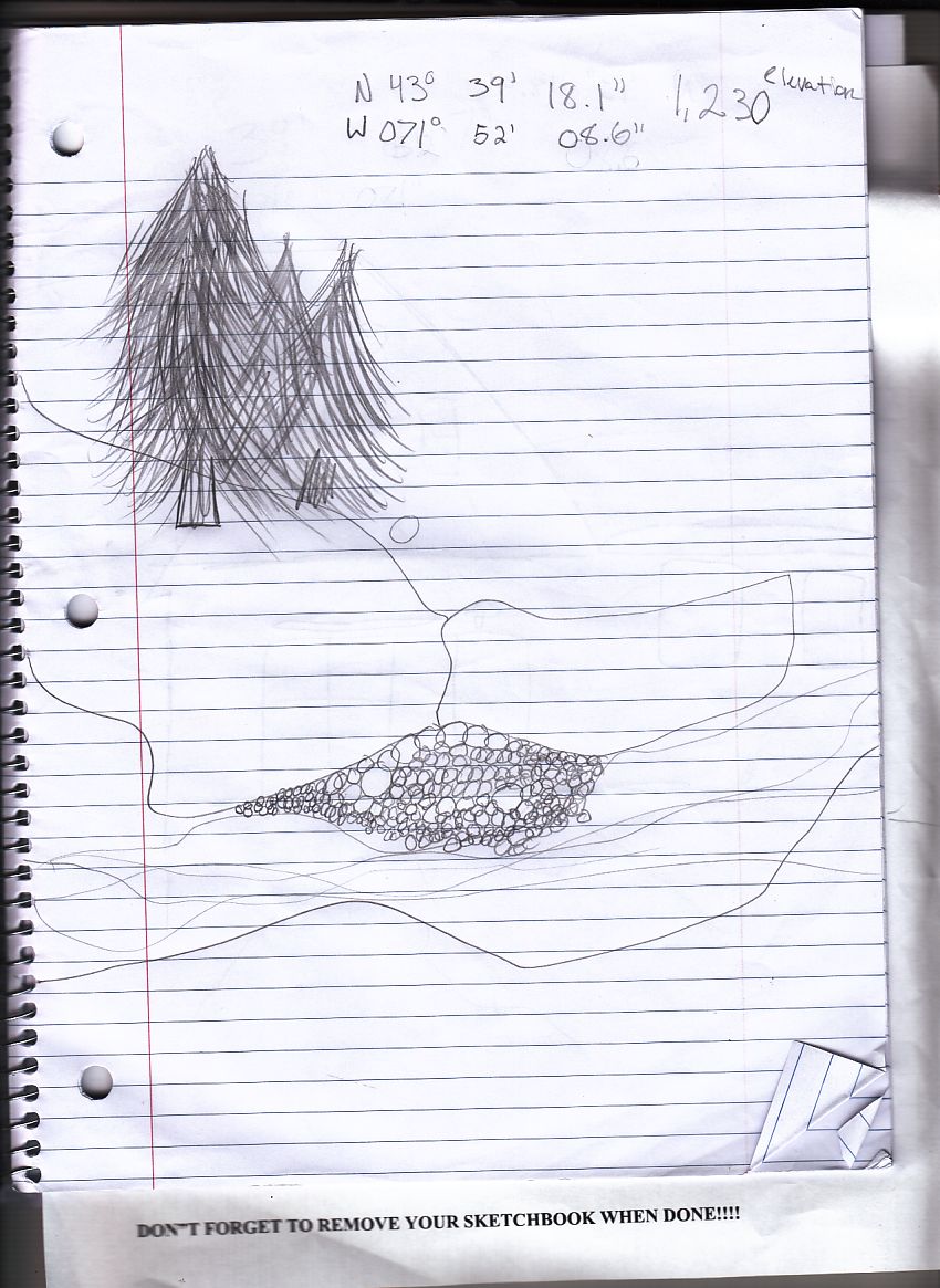 At the Cardigan field trip me, Ella, and Gemma found the Welton Falls cross the river foundation, and a cellar hole made out of an old rocks! Then after a couple miles, we sat on a rock and ate lunch. Our group stopped most of the trail to play some games (tag, hide n seek, etc.) By then, we went to a beautiful area where there’s a gorgeous river view and a nice mountain view as well. We stopped to draw and sketch the beautiful area. After that, we continued our trail. It was so much work! Running up hills, and going back down. My legs were in pain!. Then after the painful part, we returned back to the lodge to take a break. During the break, we played a little game, had some more lunch, and sketched some more things around us. Eventually, we had to return to the hiking. Most of us found some cool looking trees and plants! Such as the giant hemlock tree, an evergreen branch, a red maple tree, and last but not least, a Birch tree, and an Eastern Hemlock! (also known as the “Tsuga Canadenis”) We took another minute to relax. To breathe in the forest air. It started to get dark, and so we headed back. Me, my good friend Ella, and everyone else in our group entered the lodge once more, and sat down to chit chat for a bit and then some of us started to head home, but mostly everyone else stayed, but unfortunately I had to leave. It was an interesting day, I’ve never hiked before, and this was actually more fun than I expected! I’m still looking forward to more of these kinds of field trips soon.